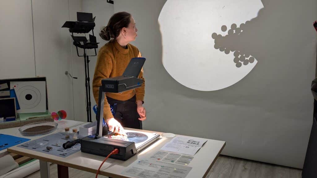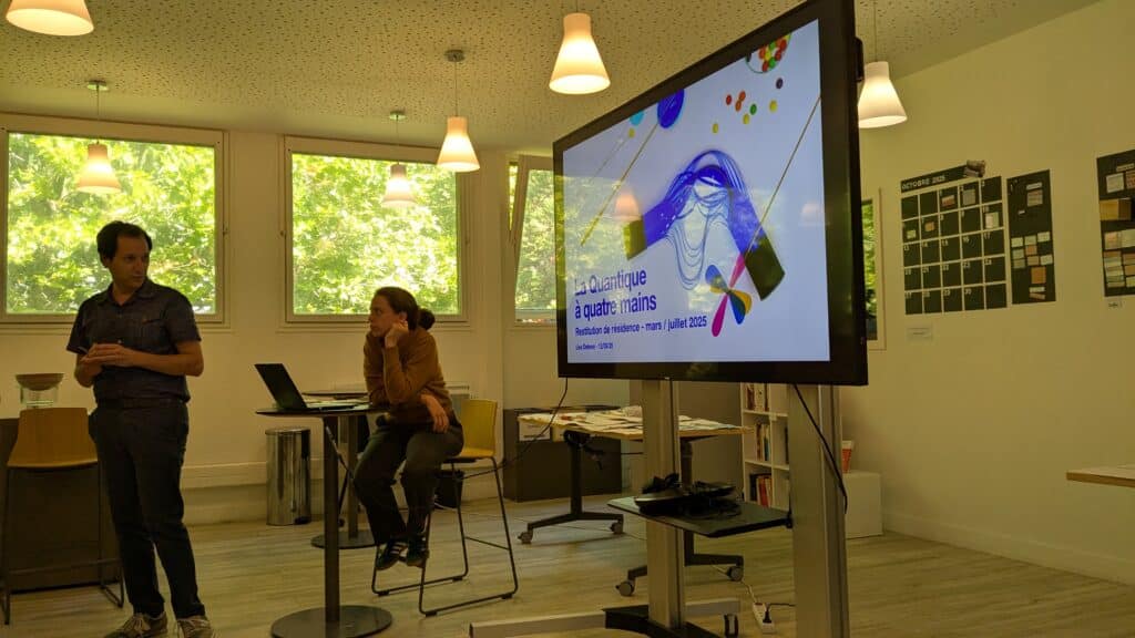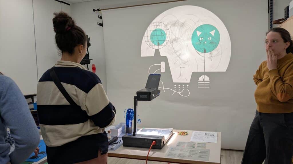 C’est avec un immense plaisir que nous avons découvert un format de conférence original et inspirant imaginé par Lisa Dehove, designeuse dans l’équipe LPA et Julien Bobroff, physicien ! Ils ont eu l’idée de créer une conférence illustrée en direct par Lisa avec un outil utilisé de manière étonnante : le rétroprojecteur.